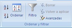 - borrar: borra el filtro y el estado de ordenación del rango actual de datos.